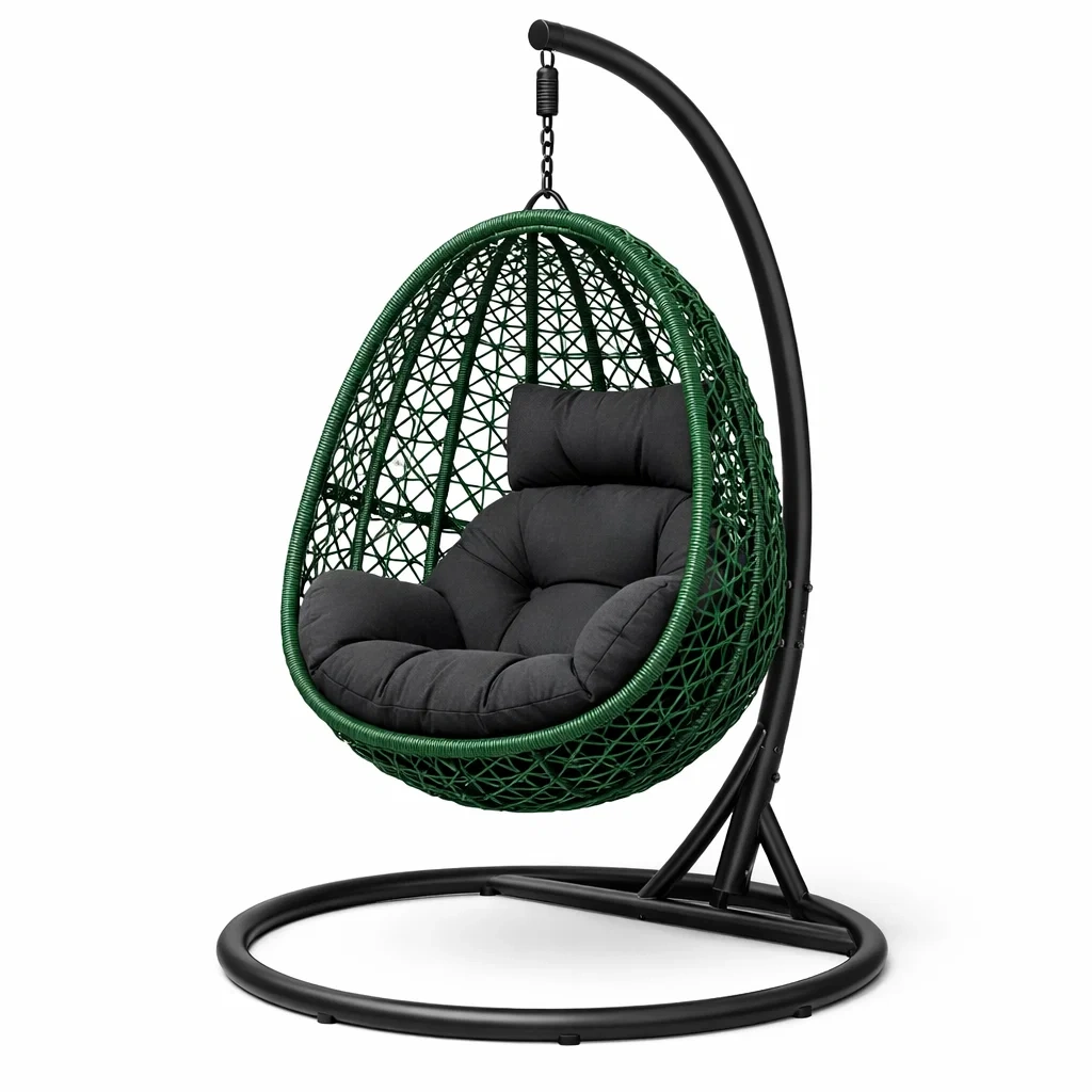 Eiförmiger hängesessel mit gestell aus rattan und metall schwarz grün